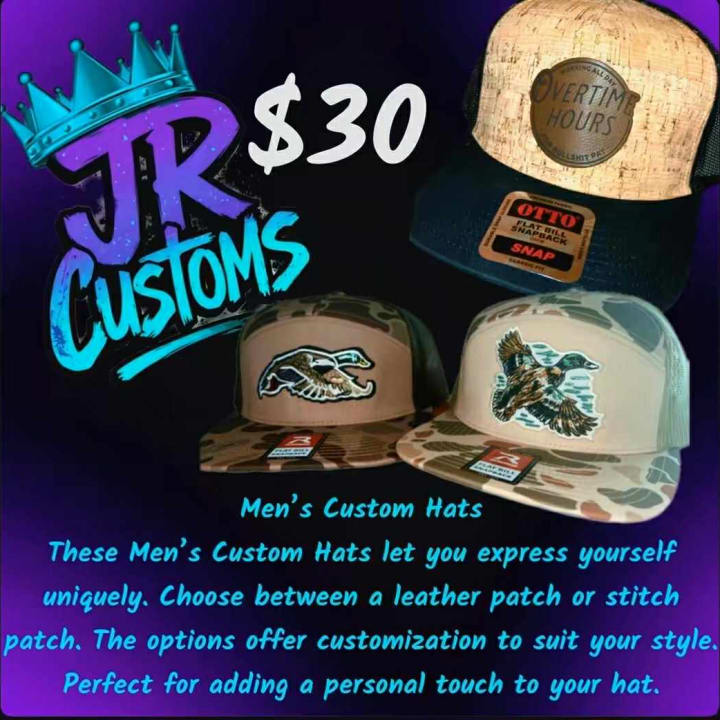 These Men's Custom Hats let you express yourself uniquely. Choose between a leather patch or stitch patch. The options offer customization to suit your style. Shipping included $7.95